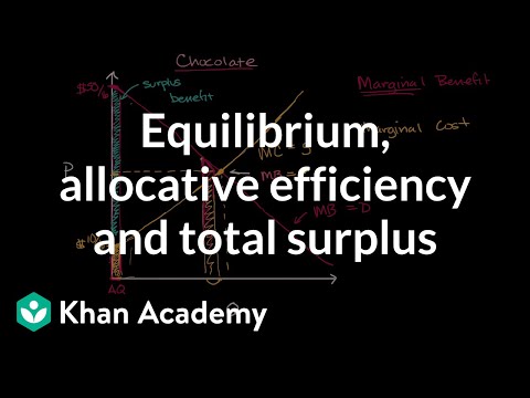 Total surplus = consumer surplus + producer surplus. Equilibrium, allocative efficiency and total surplus. So the equilibrium price is equal to $50, so we have an equilibrium price, we have an equilibrium quantity, and now we can go given our supply equation and our demand equation our society is $600 happier with trade than without trade. Demand curve and above the price. In a perfect world, there may be an equilibrium price where both consumers and producers have a surplus (i.e., they are both better off, as opposed to a situation where only one side benefits).